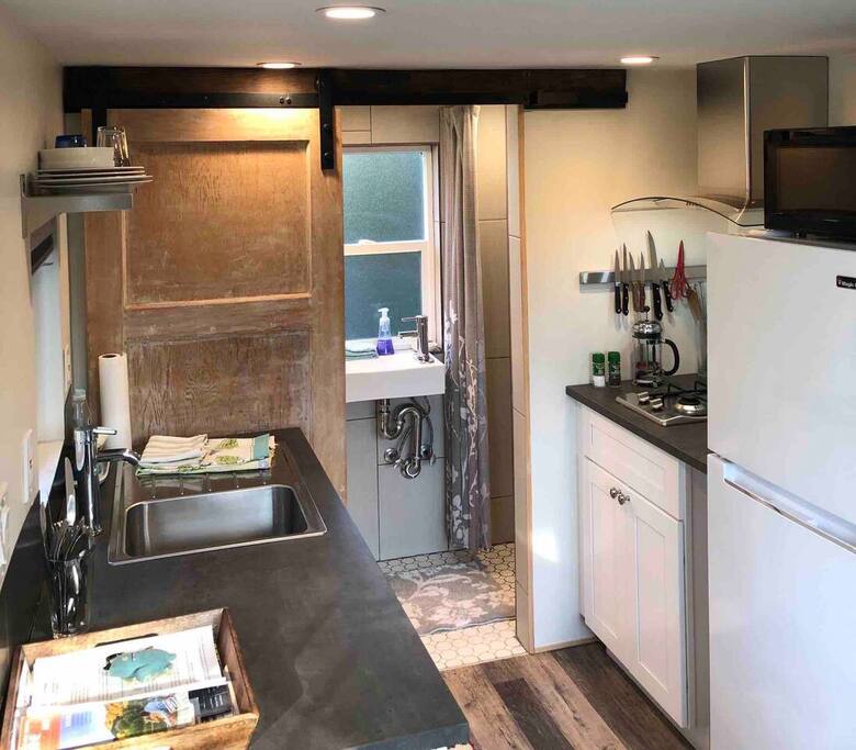 Fully functional house, situated under a coastal redwood in downtown Sebastopol. It is within walking distance of the Barlow, Hopmonk with the Abbey music venue and all that downtown Sebastopol has to offer. All without the worry of having to drive.