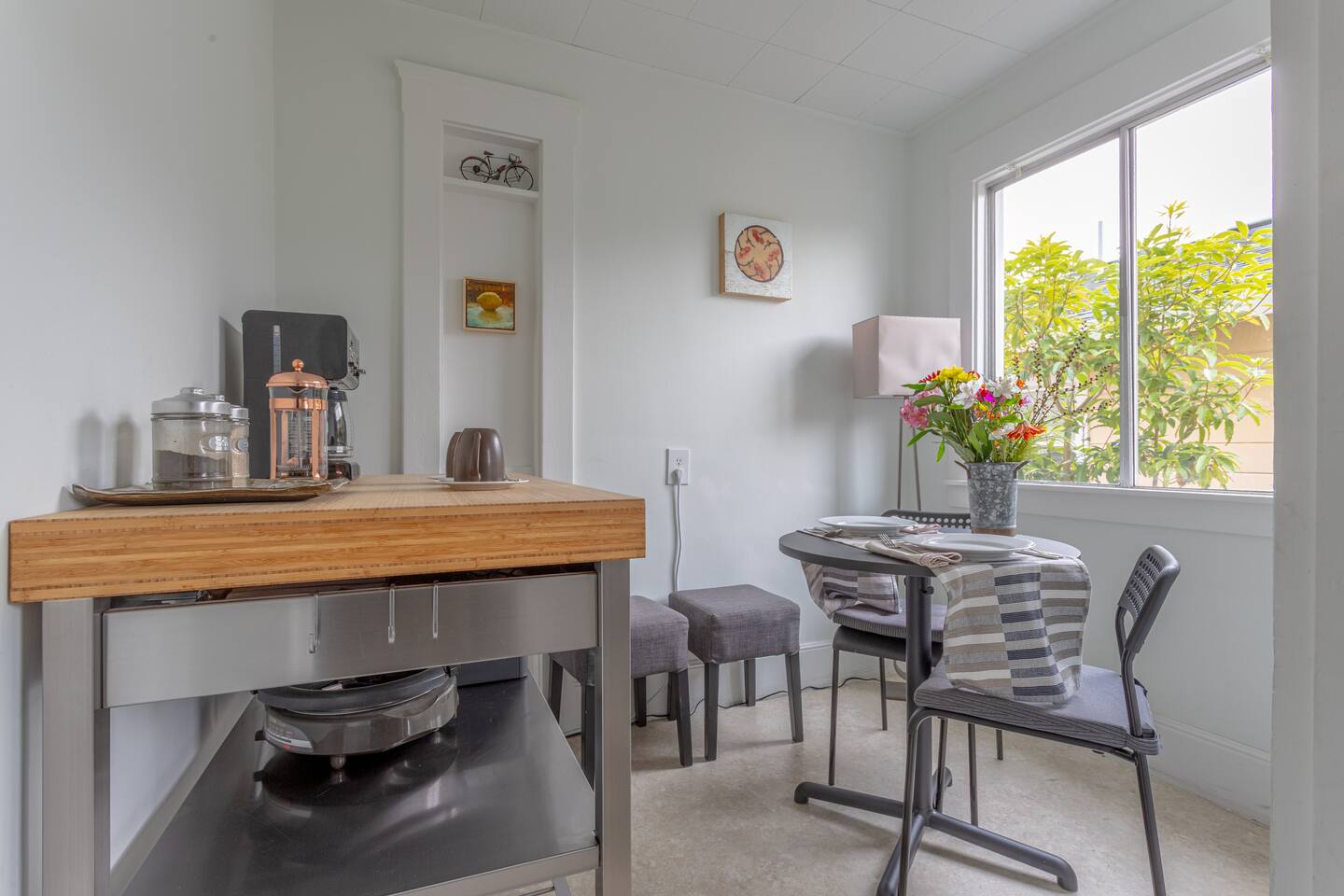 The cottage is very conveniently located, 2 blocks from the BART station and a few houses from the Ohlone jogging and bike trail. Did I mention the Cedar Rose pickleball courts just a 10 minute walk down the Ohlone trail!? The UC Berkeley campus is a 14 minute bike ride away on bike friendly roads.