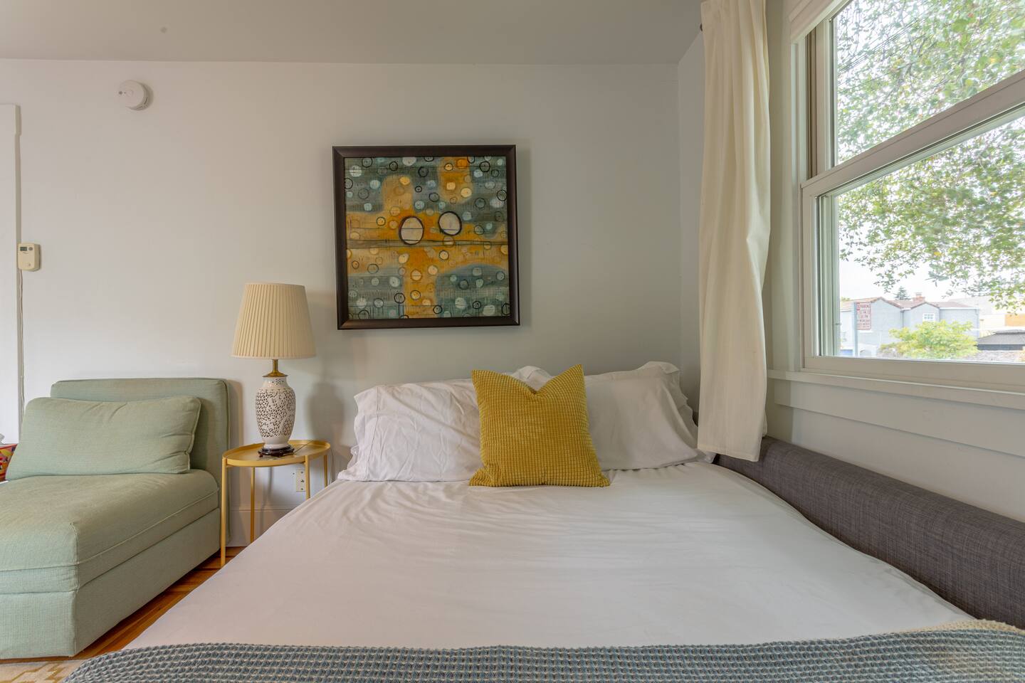 Welcome to Bay Area Cozy Stays - Berkeley. Feel right at home in 600 sq ft incl a new bathroom w heated floors! We have Sonic fiber internet, standing desk, 2 screens, ergo chair. A variety of pillows, extra blankets and room-darkening shades in the bedroom. Use the washer/dryer, iron & board to get rid of wrinkles. Roku in the bedrm, 65" smart TV in the living rm. Full kitchen. A collection of books & guides, so you can unwind with a good read or explore the area